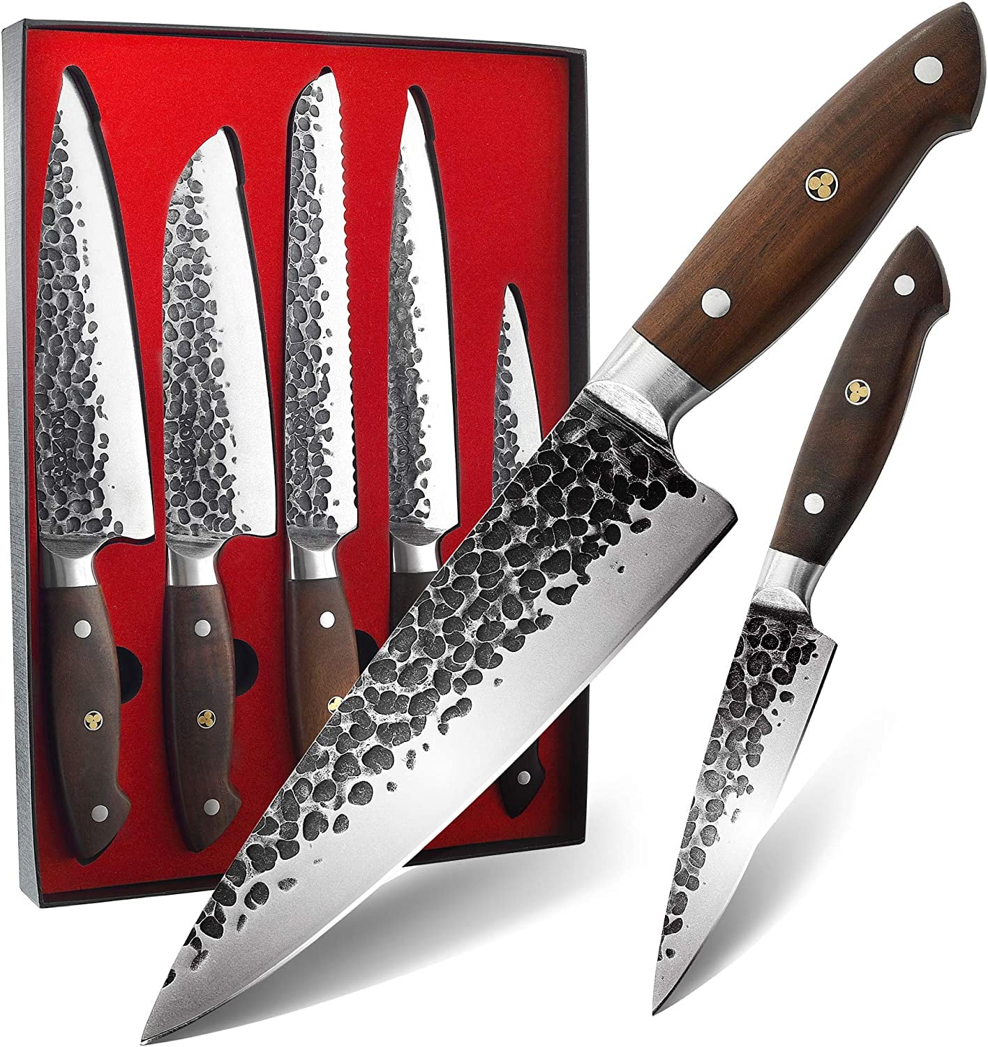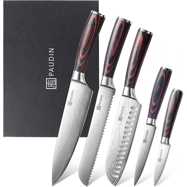 Knife Set 5 Pcs Kitchen Knife Set With Sharp High Carbon Stainless Steel Forged Blade And Non Slip Pakkawood Handle Professional Knives Set For Kitchen Chef Knife Set Come With Gift Box